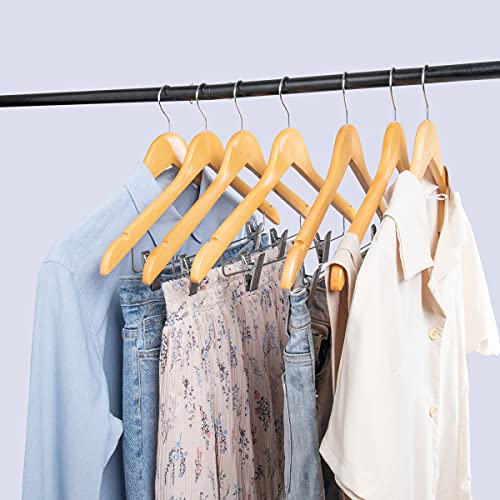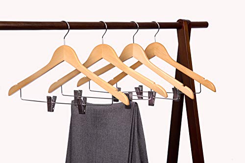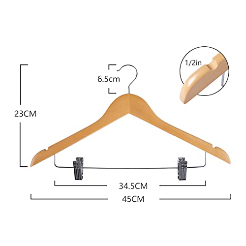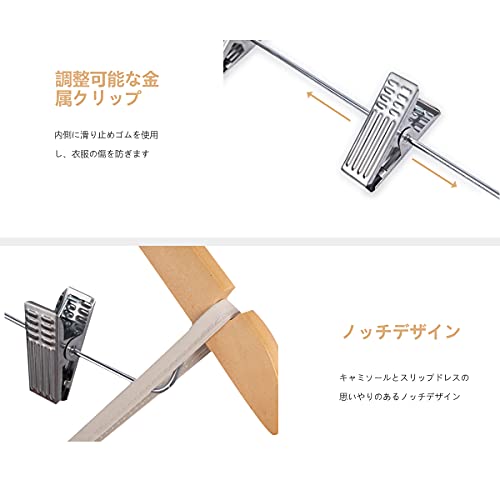 木製スーツハンガー クリップ付きハンガー 10本セット スーツ ジャケット コート用 手作 天然高級木 (ナチュ