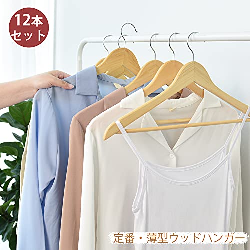 StorageWorks スーツハンガー 12本組セット 天然木製 木のハンガー 高級 衣類ハンガー 洋服ハンガー ジャケット