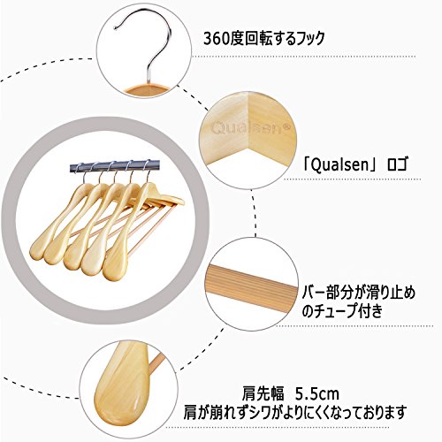 Qualsen 木製ハンガー 衣類ハンガー 洋服ハンガー 肩幅大きめ 滑り止め スーツ・洋服・ジャケット・コート用ハ