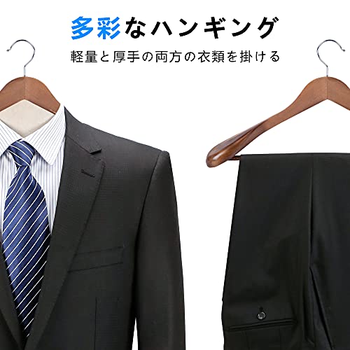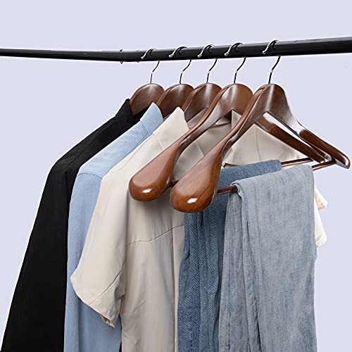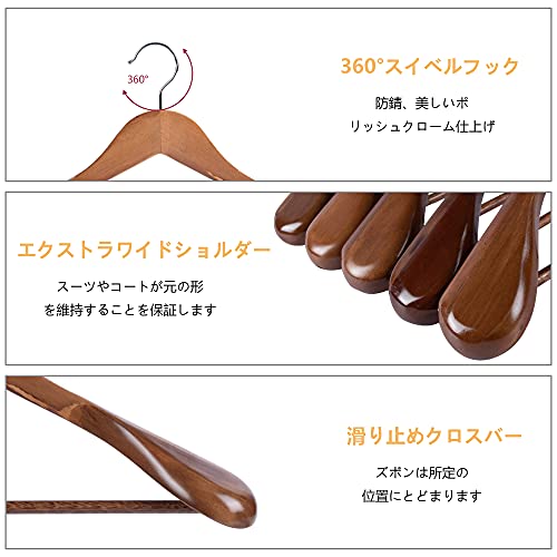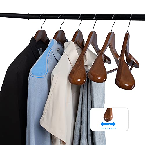 木製ハンガーセット 洋服 スーツ コート用ハンガー 手作 天然高級木 (胡桃色/6本)