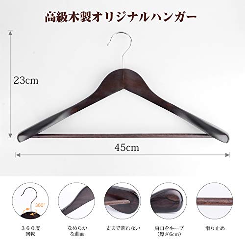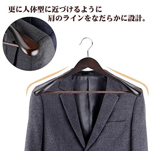 【高品質木材を採用】今度のハンガーはけやきを採用し、ケヤキそのものの特徴は「貴族」の気質があります、ケヤキは特別な、波の先端を重ねた「宝塔紋」を持っています。普通の木材よりも硬度が高いです。木部の仕上げは、赤みを感じる茶染めの「マーズブラウン」。木目に染み入る自然の濃淡が