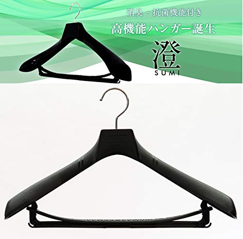 【商品特徴】ABS樹脂素材を使用し消臭抗菌効果のある素材の【練り込み】をほどこした高機能なスーツハンガーです。ハンガーにかけておくだけでお手軽ケア。スーツ・ジャケット等型崩れすることなくスッキリおさまるように設計しました。スラックス止めが付いている物はたくさんあると思いますが、スラックスをきつくプレスすることなく、落ちることなく、程よくパッチンしてくれます。厚みもほどよく、しっかりあり、型くずれしません。