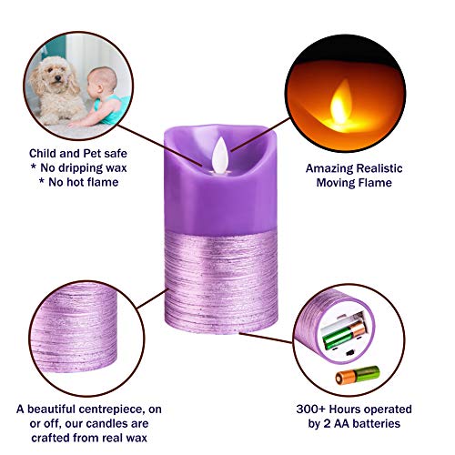 この美しいピラーキャンドルセットでゲストに印象を与えましょう - 本物のワックスとスタイリッシュなパープルのトリムで、ご自宅全体に高級感を添え、お子様やペットにやさしい製品です。 結婚式、パーティー、または雰囲気を演出したいイベントに最適です。