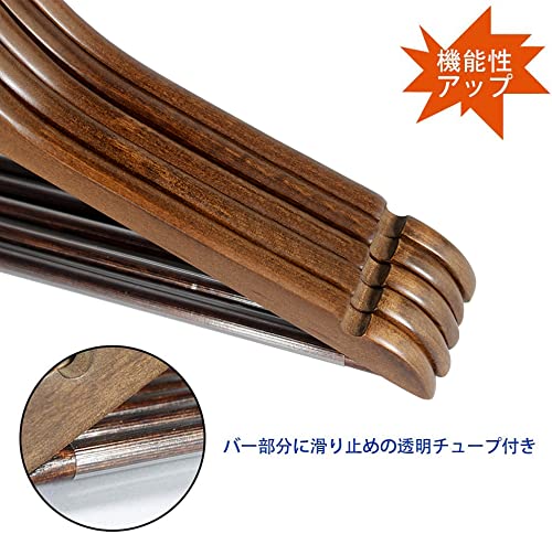 Qualsen 木製ハンガー 衣類ハンガー 洋服ハンガー すべらない 肩部分に凹み付き 透明チュープが付き 滑り止め