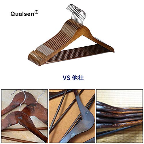| 商品名 | Qualsen 木製ハンガー 衣類ハンガー 洋服ハンガー すべらない 肩部分に凹み付き 透明チュープが付き 滑り止め |