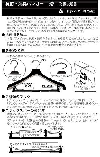 【商品特徴】ABS樹脂素材を使用し消臭抗菌効果のある素材の【練り込み】をほどこした高機能なスーツハンガーです。ハンガーにかけておくだけでお手軽ケア。スーツ・ジャケット等型崩れすることなくスッキリおさまるように設計しました。スラックス止めが付いている物はたくさんあると思いますが、スラックスをきつくプレスすることなく、落ちることなく、程よくパッチンしてくれます。厚みもほどよく、しっかりあり、型くずれしません。