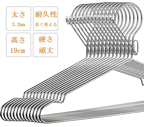 『品質&耐久』ハンガーは防風設計になっていて、フック部分はロック式なので、物干し竿をしっかり固定できます。サビにくいSUS304ステンレス鋼製、オールステンレスなので、耐久性が抜群で、標準サイズユニセックス幅約41cmX高さ約19cm、 1本辺りの厚さ:約3.2mm 重さ約60g耐荷重をさらにアップします、重めのアウターでも形が変わらずに収納できます。