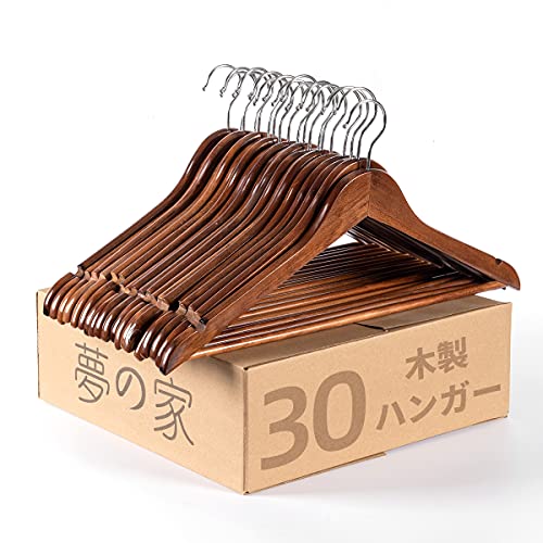 木製ハンガーセット スーツ ジャケット用 手作 天然高級木 (茶褐色 30本)