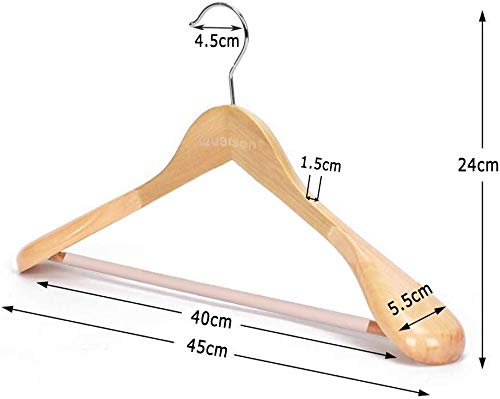 Qualsen 木製ハンガー 衣類ハンガー 洋服ハンガー 肩幅大きめ 滑り止め スーツ・洋服・ジャケット・コート用ハ