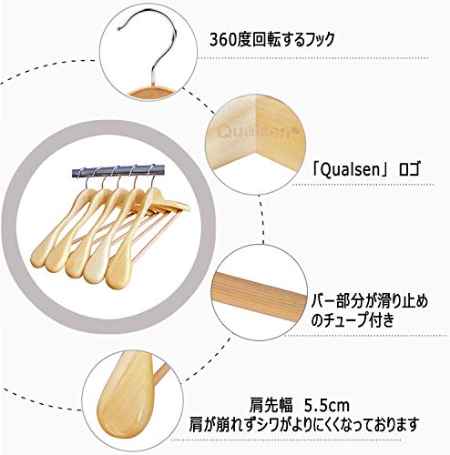 | 商品名 | Qualsen 木製ハンガー 衣類ハンガー 洋服ハンガー 肩幅大きめ 滑り止め スーツ・洋服・ジャケット・コート用ハ |