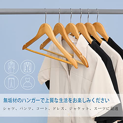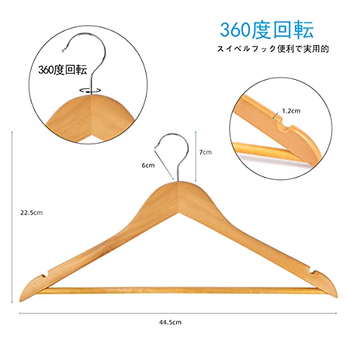 【高級感溢れる】シンプルなデザイン、高級天然木で作られたハンガーですので、木目が綺麗で高級感 溢れます。無毒で安全、耐久性に優れて、重いコート、スーツでも大丈夫です。