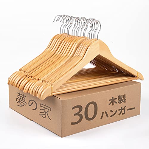 木製ハンガーセット スーツ ジャケット用 手作 天然高級木 (ナチュラル 30本)