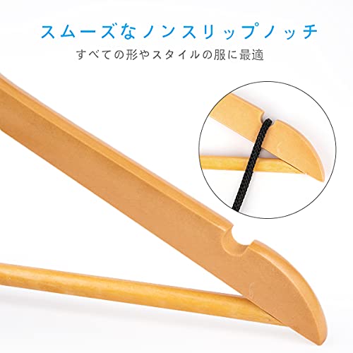 【高級感溢れる】シンプルなデザイン、高級天然木で作られたハンガーですので、木目が綺麗で高級感 溢れます。無毒で安全、耐久性に優れて、重いコート、スーツでも大丈夫です。