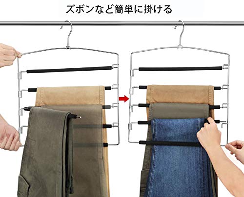 【省スペースズボンハンガー】1本のハンガーで五つのズボンを収納でき、スーペス利用率が80%にアップされます。クローゼットが混雑しなくなります。