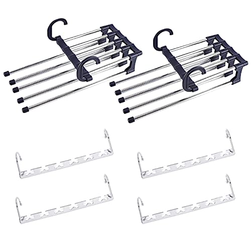 FIRE SIGN ズボンハンガー 2本 シャツハンガーフック 4本 省スペース ハンガー セット 折り畳み 多機能 縦横両用