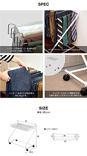 ?【空いた場所を有効活用】 高さは65cm、奥行きが39.5cmとコンパクトサイズでクローゼットや押し入れの空いた場所に入りやすく無駄なく衣類を収納できます。 ?【パンツの広がりを抑えるフレーム】 大きく斜めに架かったサイドのフレームが、パンツの広がりを抑えてくれます。沢山かけても場所を取らずに済みます。 こちらのパンツ