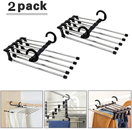 クローゼット 収納 ズボンハンガー 5段ズボンハンガー 2本セット 折り畳み式 多機能スラックスハンガー 連結