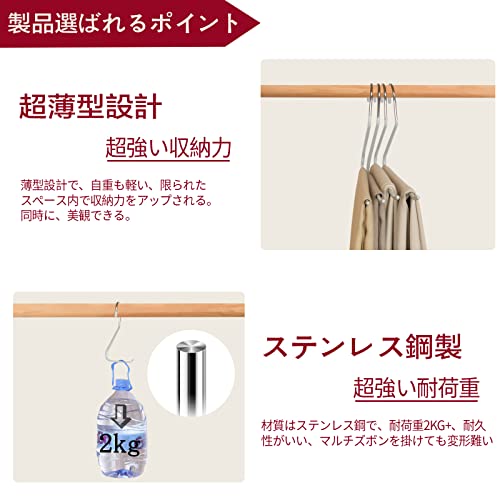 【超強い荷重&優れた耐久性】頑丈なクロームメタル製のスラックスハンガーで、錆びや変形の心配がなく、強力な容量を備えています。同じパンツハンガーに複数のアイテムがあっても、錆と変形難い。