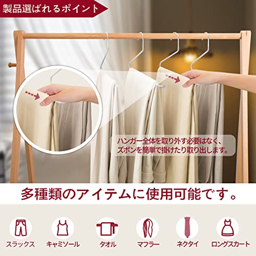 【滑らない加工&UPSWEPT REAR】ズボン ハンガーにゴムコーティングを施し、ズボンをすっきりと固定します。ズボン用ハンガーのコーティングは、衣服のしわを防ぐのにも役立ちます。特別に設計された上向きのリアは、滑り落ちの問題がありません。