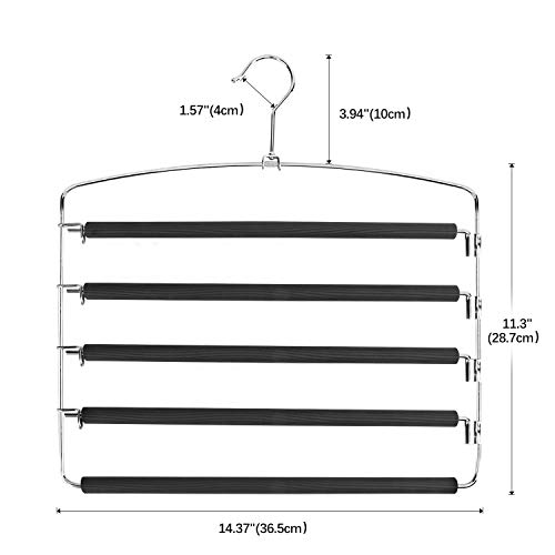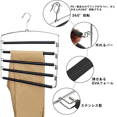 【多機能&滑り止めデザイン】このハンガーはズボンの収納に適用だけでなく、スカーフ、タオル、ベルト、ネクタイ、ほかの小物などの収納にも適しています。EVAフォームで作られたバーは匂いなし、褪色なし、衣類の脱落を防ぎ、傷付き防止できます。