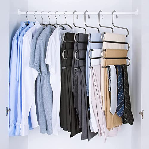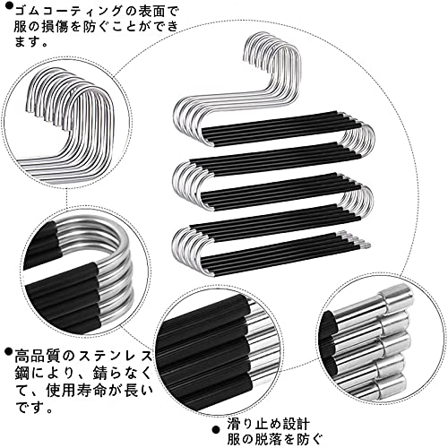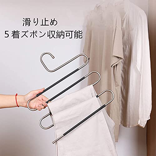 【おしゃれなS型ハンガー】S字型デザインによって、空間を最大限に利用できて、ズボンが同時に5つ収納可能となります。散らかした服を整然として片付け、生活に大きな助けを与えられます。