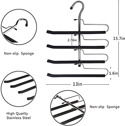 パンツハンガー滑り止め、4層省スペースズボンハンガー、ステンレススチール多機能パンツラック、パンツ用