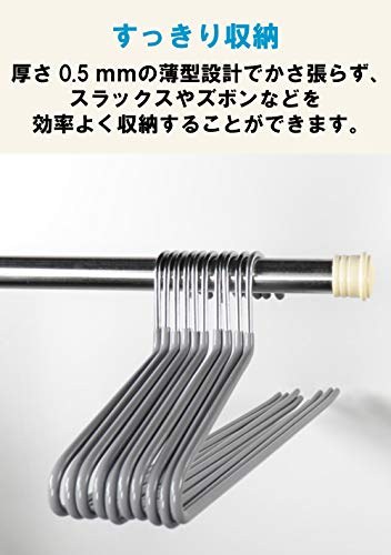 表面を特殊ノンスリップコーティング加工する高品質のすべらないハンガーです。柔らかな材質で、衣類にやさしく、衣服の滑りが回避されます。厚みわずか0.5cmの薄型でかさ張らず、スラックスやズボンなどを効率よく収納することができます。