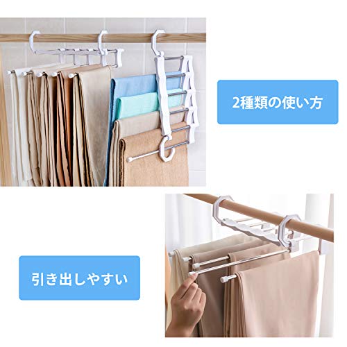 【省スペース】5段のSタイプズボンハンガーは、80%のクローゼットスペースを節約し、簡単に開閉することができます。最大化してクローゼットスペースを節約しなから、清潔と整然を保持できます。