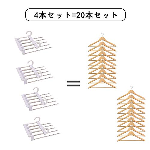 HongFeng ズボンハンガー パンツハンガー 4本 多機能スラックスハンガー 皺防止 クロゼット収納 省スペース 5