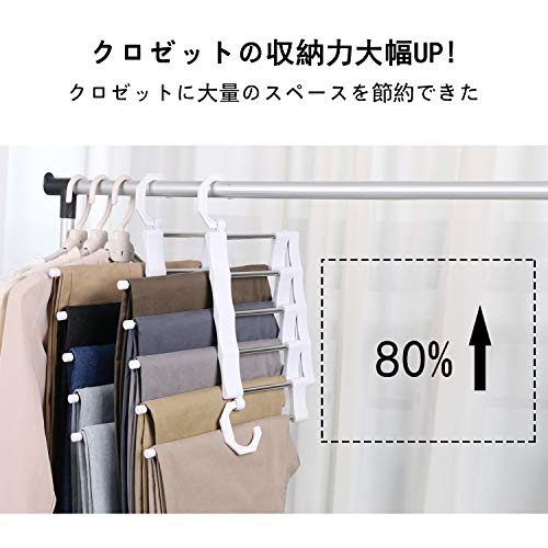 【省スペース】5段のSタイプズボンハンガーは、80%のクローゼットスペースを節約し、簡単に開閉することができます。最大化してクローゼットスペースを節約しなから、清潔と整然を保持できます。
