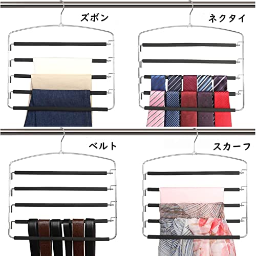 【多機能&滑り止めデザイン】このハンガーはズボンの収納に適用だけでなく、スカーフ、タオル、ベルト、ネクタイ、ほかの小物などの収納にも適しています。EVAフォームで作られたバーは匂いなし、褪色なし、衣類の脱落を防ぎ、傷付き防止できます。