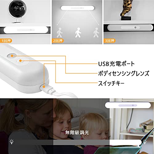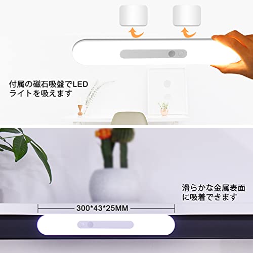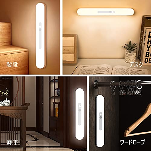 人感 センサーライト 室内 2200mAH 無段階調光 階段ライト 30cm 昼光色 64LED USB充電式 寝室 台所 廊下 玄関 戸棚ラ