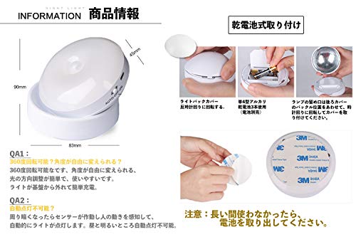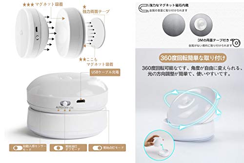 | 商品名 | センサーライト 室内 人感 3個 usb充電と電池式 360°回転 マグネットと貼り付け型 足元灯 夜間ライト ナイト 常 |