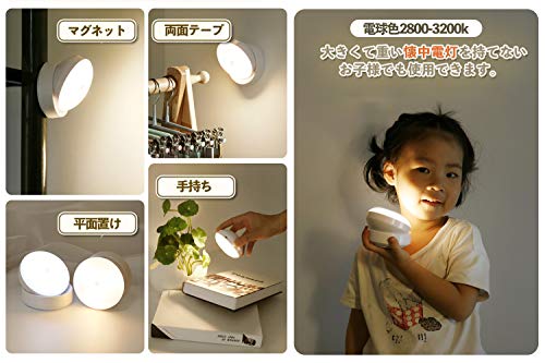 センサーライト 室内 人感 3個 usb充電と電池式 360°回転 マグネットと貼り付け型 足元灯 夜間ライト ナイト 常