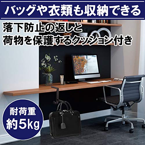 デスクや棚を傷つけないソフトクッション付き: 2本のバーで高さ調節可能。5cmの厚さの板まで挟んで設置できるので、机や棚などに設置が可能。 挟む部分には柔らかいクッションが施されているので、ヘッドホンや机など傷を付ける心配はありません。 長時間設置できますし、気分や環境の変化で別の場所に取り付けることもできます。
