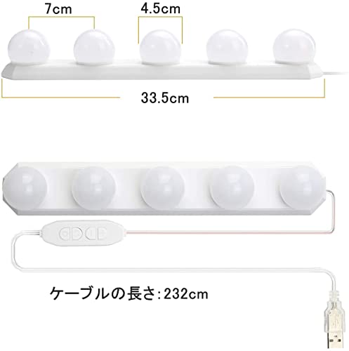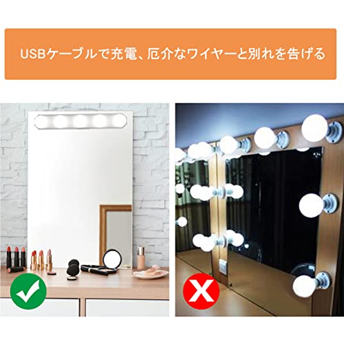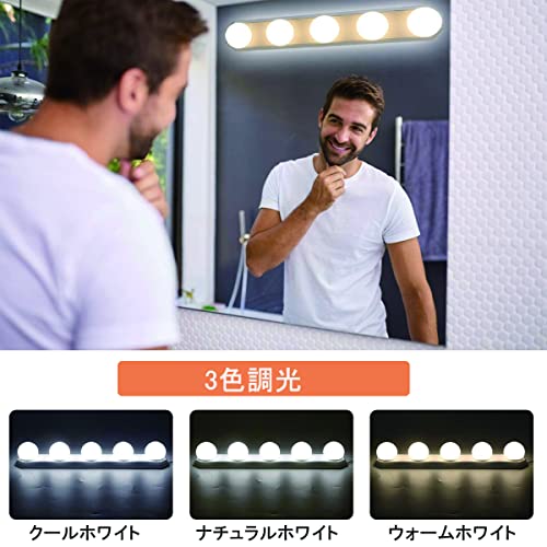 Leweet女優ライト LEDミラーライト メイクアップライト 三色調光 明るさ5段階調整 LED化粧鏡電球 5個LED電球 穴が