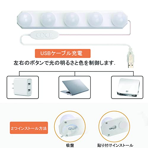 ?【取り付けが簡単】吸盤設計を採用しているため、工具や配線を使わずに、数分以内にミラー、フレーム、または壁に直接貼り付けることができます。次に、付属のUSBケーブルを電源アダプター(含みません)を差し込むと、普通のミラーをプロのメイクミラーに変えることができます。