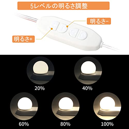 ?【5段階の明るさ調整可能】スマートオン/オフタッチ調光スイッチは、いつでもニーズに応じて明るさを調整できます。 LEDミラーライトは、柔らかく自然で明るい光沢を生み出し、暗闇でのメイクアップに十分な明るさ??を提供し、メイクアップのためのプロの色
