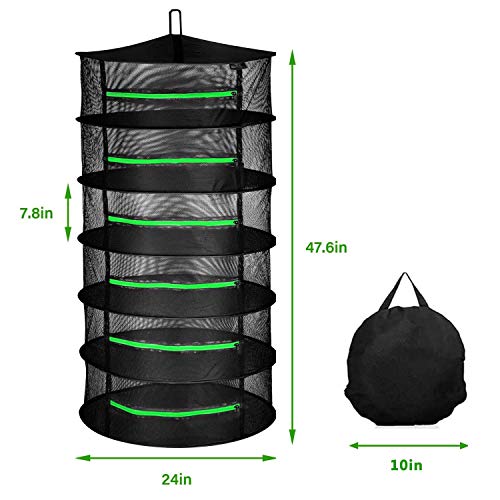 【サイズ】:このハーブ乾燥ラックはのサイズは47.6x24インチです。7.5インチの6層があり、外装は黒、緑のジッパー付き