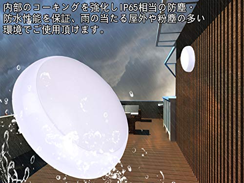 【IP65 防水、防湿型】IP65の防水仕様となっており、 屋外でのご利用も可能です。屋根のない場所、雨がよく降られる場所に取り付けてもご安心です。軒先、玄関、壁掛け、庭先、バルコニー、トイレに適しています。