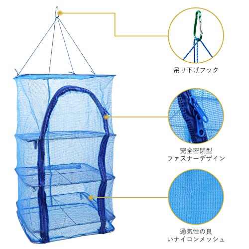【高品質の素材】丈夫なナイロンとスチールワイヤーで作られ、各層にはワイヤーループがあり、しっかり支えます。広げたサイズは65×35×35cmで、物干しネットとして最適です。