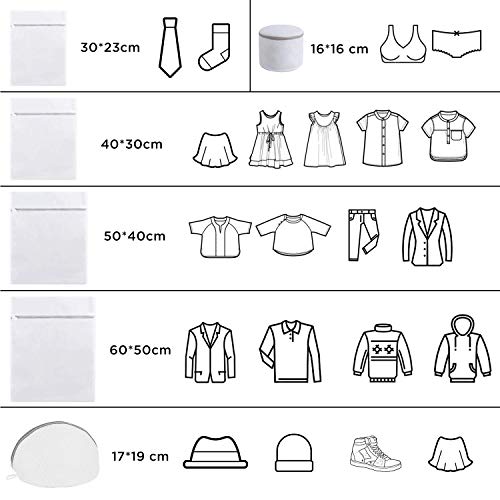 ?【8枚入り】:洗濯ネットセット。角型:6050cm×1枚、5040cm×1枚、4030cm×2枚、3023cm×2枚; 筒型:2030 cm×1枚;ドーム型:1719 cm×1枚。