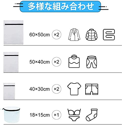 【7枚入 洗濯ネット】角型:6050cm×2、5040cm×2、4030cm×2、筒型:1815cm×1 特大 布団 ランドリーネット