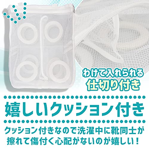 スニーカー・スリッパ・お子様の上履きなどを丸洗いできる洗濯ネットです。中央部分には仕切りがついている設計になっているので、洗濯中に靴同士の擦れによる傷みを防ぐ事が出来ます。