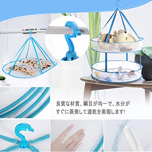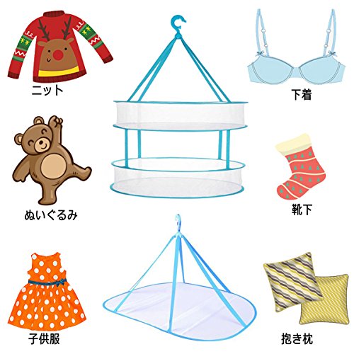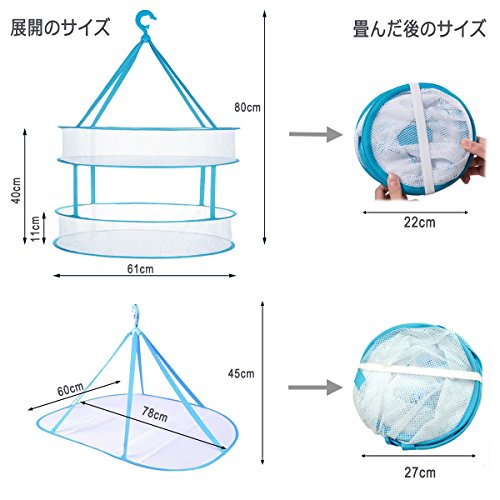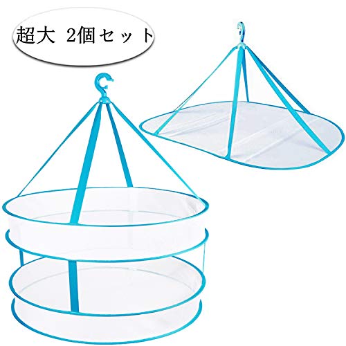 【パッケージ内容】特大2段と1段物干しネット各1でセットです。【サイズ】2段のサイズ(約):直径61cm高さ80cm、畳んだ後のサイズが約22cm(直径)。1段のサイズ(約):長さ78cm幅60cm高さ45cm、畳んだ後のサイズが約27cm(直径)。【耐荷重】1段約2kg(無理に重たいものを載せると破損の原因となりますのでご注意ください)