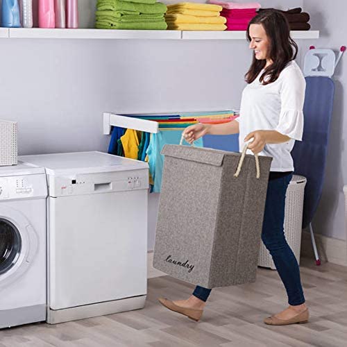 丈夫で調節可能なロープハンドル: 折りたたみ式ランドリーバスケットには強化コットンロープハンドルが付いており、長さを調節できるので、簡単に持ち運びでき、丈夫な底が毎回使用しても形を保ちます。