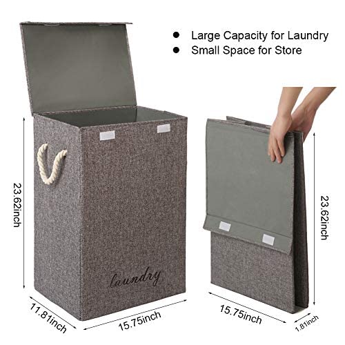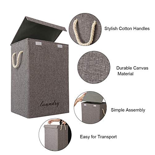 COUNER 蓋付きランドリーハンパー 大型ランドリーバスケット ハンドル付き 折りたたみ式ハンパー 洗濯簡単 収