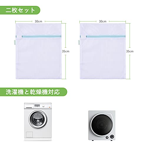 OTraki 洗濯ネット 中 30x35cm 2枚入り YKKファスナー ランドリーネット 角型 洗濯袋 四角 細かい網目 ランドリーバ
