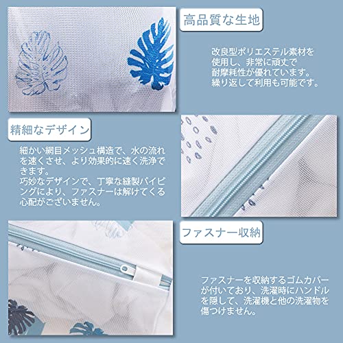 ?【オシャレなデザイン?便利に利用できる】細かい網目のガードメッシュを採用した洗濯ネットです。縦横交織による台形状なメッシュ構造になっていて、網目が細かいが、水の滑らかな流れを妨げません。支えフレーム上下底面に内蔵デザインで適当な硬さと弾性を併せ持つ、洗濯中に衣類の損傷を防ぎ、衣類の摩擦を減らし、洗浄力を発揮しながら、最大限に衣類を守ってくれます。オシャレな木の葉絵柄、清潔感あるデザインで、落ち着いた色味と素材で可愛くなりすぎず、おしゃれな見た目がある。