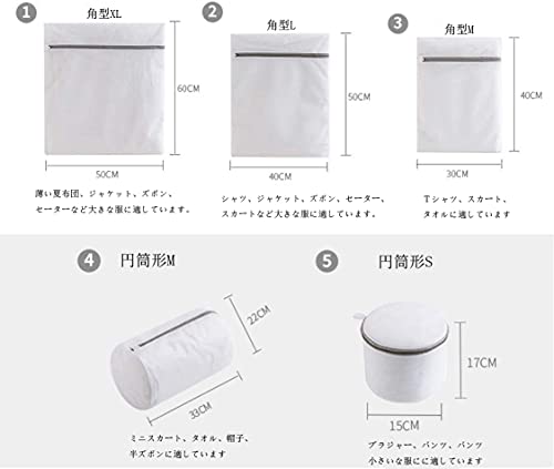 1,【梱包内容】洗濯ネットセット5枚入(色がランダム)。角型:6050cm×1、5040cm×1、4030cm×1、ドーム型:1517 cm×1、筒型:2233 cm×1.